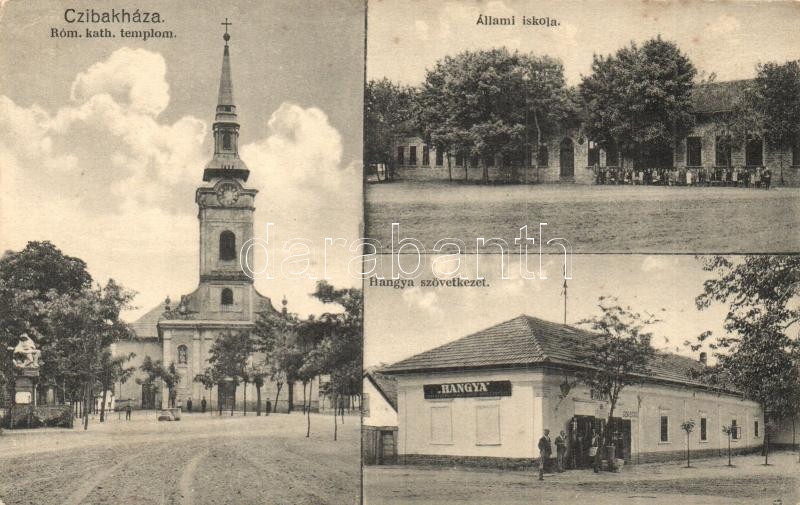Cibakháza, Állami iskola, hangya szövetkezet, Római katolikus templom https://www.darabanth.com/de/324-Fernauktion/324.0/Ansichtskarten/Ungarn~2000006/Cibakhaza-Allami-iskola-hangya-szovetkezet-Romai-katolikus-templom~II1517595