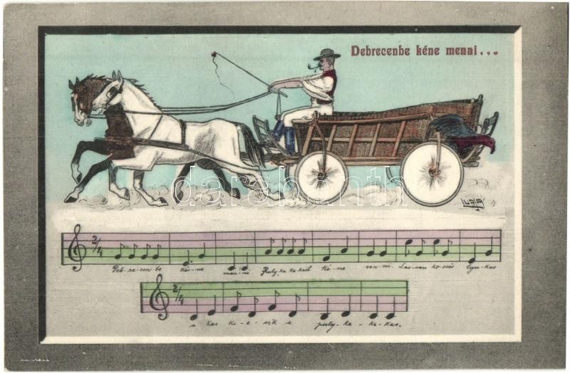Beschreibung: Debrecen, Debrecenbe kéne menni... folklór művészlap. Aczél Henrik kiadása. s: Lurja (EK)
