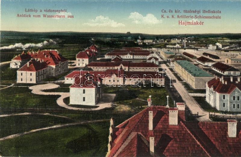 Hajmáskér, látkép a víztoronyból, Cs. és kir. tüzérségi lövőiskola https://www.darabanth.com/de/324-Fernauktion/324.0/Ansichtskarten/Ungarn~2000006/Hajmasker-latkep-a-viztoronybol-Cs-es-kir-tuzersegi-lovoiskola~II1799463