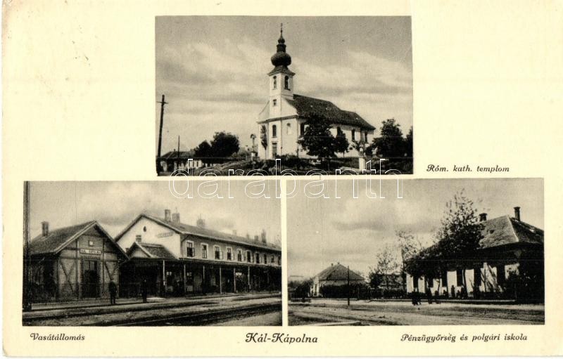 Beschreibung: Kál-Kápolna; Római katolikus templom, vasútállomás, Pénzügyőrség, polgári iskola