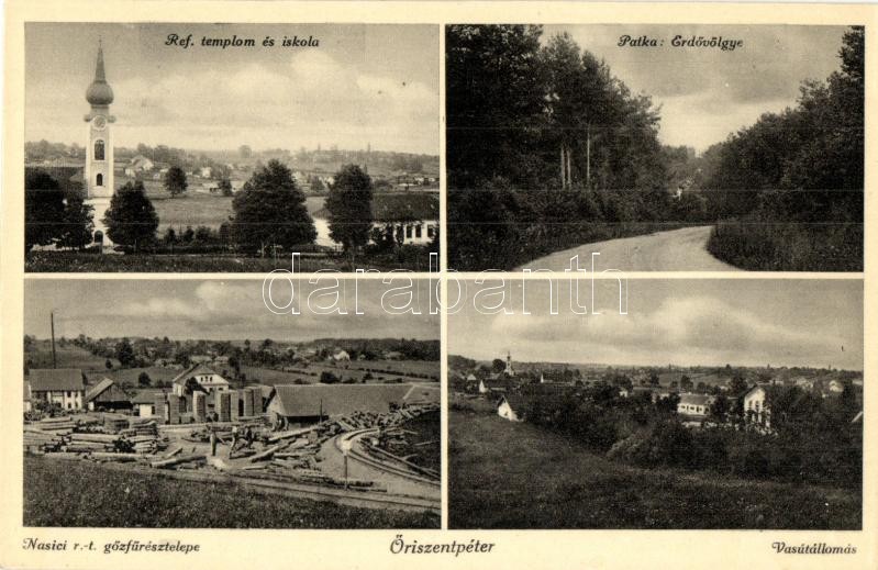 Beschreibung: Őriszentpéter, Református templom és iskola, vasútállomás, Nasici rt. gőzfűrésztelepe, Patka Erdővölgye