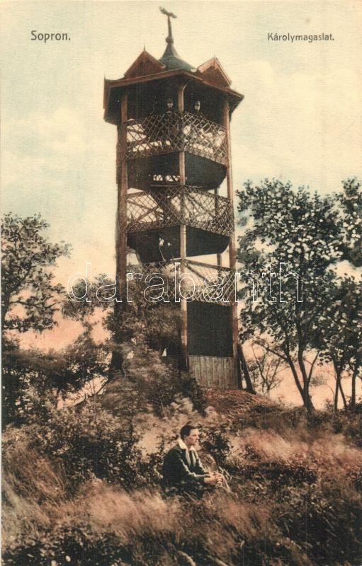 Sopron, Károly magaslat, kilátó, kiadja Monsberger Gottfried https://www.darabanth.com/de/324-Fernauktion/324.0/Ansichtskarten/Ungarn~2000006/Sopron-Karoly-magaslat-kilato-kiadja-Monsberger-Gottfried~II1802356