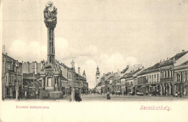 Szombathely, Erzsébet királyné útja, üzletek, Szentháromság szobor (EK... https://www.darabanth.com/de/324-Fernauktion/324.0/Ansichtskarten/Ungarn~2000006/Szombathely-Erzsebet-kiralyne-utja-uzletek-Szentharomsag-szobor-EK~II1803032