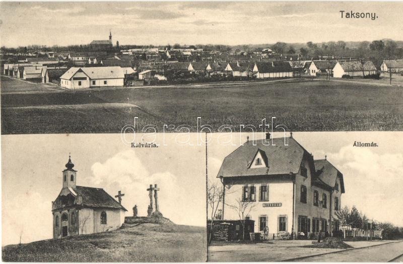Taksony, látkép, Kálvária, templom, Vasútállomás (kissé ázott szél / s... https://www.darabanth.com/de/324-Fernauktion/324.0/Ansichtskarten/Ungarn~2000006/Taksony-latkep-Kalvaria-templom-Vasutallomas-kisse-azott-szel-slightly-wet-edge~II1803364