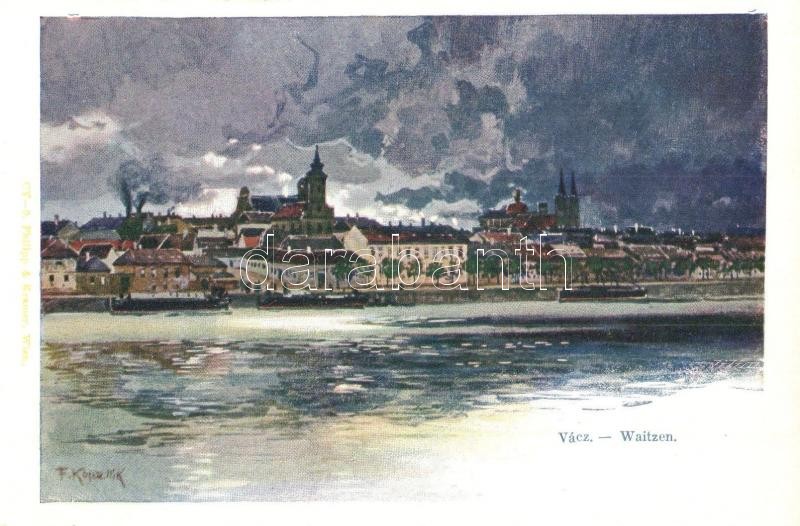 Vác, látkép. Philipp & Kramer 9. művészlap. s: F. Kopallik (EK) https://www.darabanth.com/de/324-Fernauktion/324.0/Ansichtskarten/Ungarn~2000006/Vac-latkep-Philipp-Kramer-9-muveszlap-s-F-Kopallik-EK~II1799864