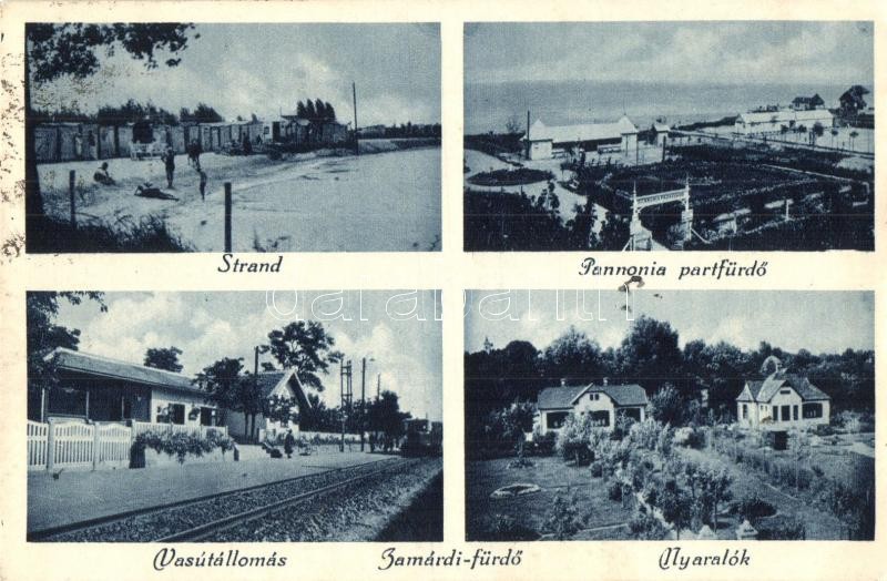 Zamárdi, Strand, Pannonia partfürdő, Vasútállomás, Nyaralók, villa (áz... https://www.darabanth.com/de/324-Fernauktion/324.0/Ansichtskarten/Ungarn~2000006/Zamardi-Strand-Pannonia-partfurdo-Vasutallomas-Nyaralok-villa-azott-wet-damage~II1798118