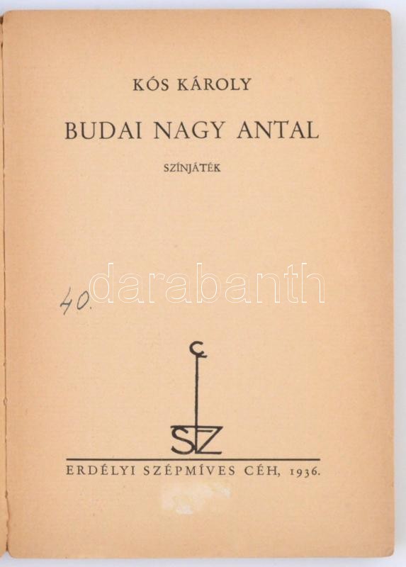 Kós Károly: Budai Nagy Antal. Kolozsvár, 1936, Erdélyi Szépmíves Céh. ... https://www.darabanth.com/de/324-Fernauktion/324.0/Bucher/Bucher-Andere-kuriositaten~1000018/Kos-Karoly-Budai-Nagy-Antal-Kolozsvar-1936-Erdelyi-Szepmives-Ceh-Kiadoi-papirboritob~II1448274