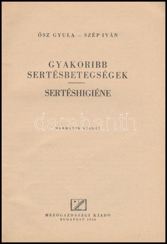 Ősz Gyula-Szép Iván: Gyakoribb sertésbetegségek. Sertéshigéne. Bp., 19... https://www.darabanth.com/de/324-Fernauktion/324.0/Bucher/Bucher-Gastronomie-und-Gartnerei~1000007/Osz-Gyula-Szep-Ivan-Gyakoribb-sertesbetegsegek-Serteshigene-Bp-1956-Mezogazdasagi-Kia~II1733168