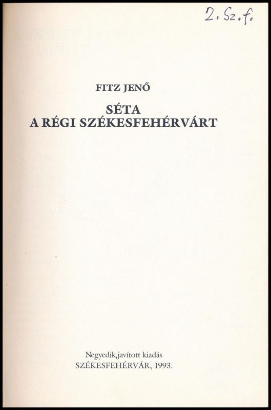 Fitz Jenő: Séta a régi Székesfehérvárt. Székesfehérvárt, 1993, Szent István Király Múzeumai, (Vörösmarty Nyomda Rt.-ny.) Negyedik, javított kiadás. Kiadói papírkötés.