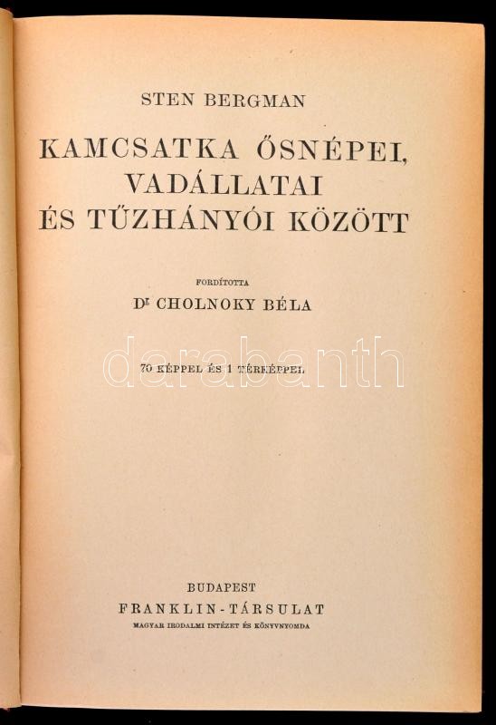 Sten Bergman: Kamcsatka Å‘snépei, vadállatai és tűzhányói között. FordÃtotta Dr. Cholnoky Béla. A Magyar Földrajzi Társaság Könyvtára. Bp., é.n.,Lampel R. (Wodianer F. és Fiai). Kiadói aranyozott egészvászon sorozatkötésben, jó állapotban.