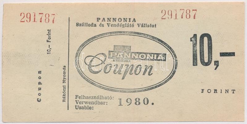 1980. "Pannonia Coupon - Pannonia Szálloda és Vendéglátó Vállalat... https://www.darabanth.com/de/324-Fernauktion/324.0/Numismatik/Notgeld-aus-Papier-und-Metall~2500006/1980-Pannonia-Coupon-Pannonia-Szalloda-es-Vendeglato-Vallalat-utalvany-10Ft-ertekben-T~II1799226
