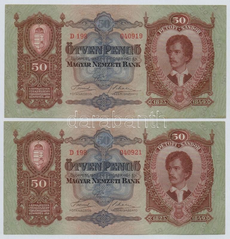 1932. 50P (2x) egyugrásos sorszámkövetők + 1936. 10P (4x) közte sorszá... https://www.darabanth.com/de/324-Fernauktion/324.0/Numismatik/Ungarische-Banknoten~2500007/1932-50P-2x-egyugrasos-sorszamkovetok-plus-1936-10P-4x-kozte-sorszamkoveto-par-TI-I-~II1799296