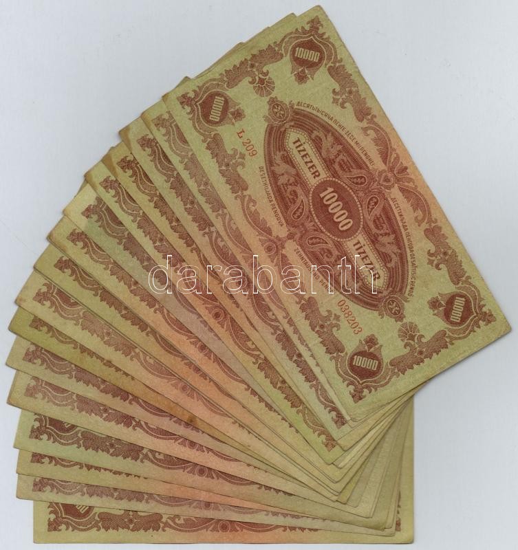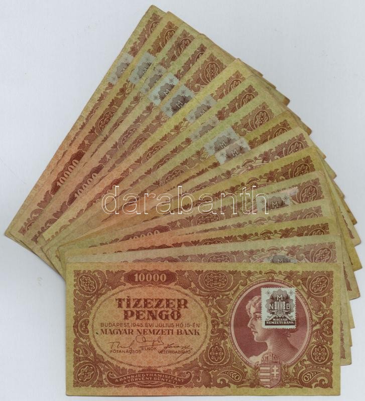1945. 10.000P (30x) "MNB" bélyeggel T:III https://www.darabanth.com/de/324-Fernauktion/324.0/Numismatik/Ungarische-Banknoten~2500007/1945-10000P-30x-MNB-belyeggel-TIII~II1800890