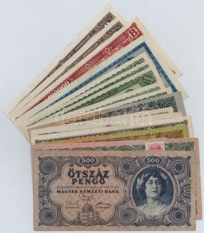 Beschreibung: 1945-1946. 500P-1.000.000BP (17x) közte tizenegy különféle címlet T:I-,II,III