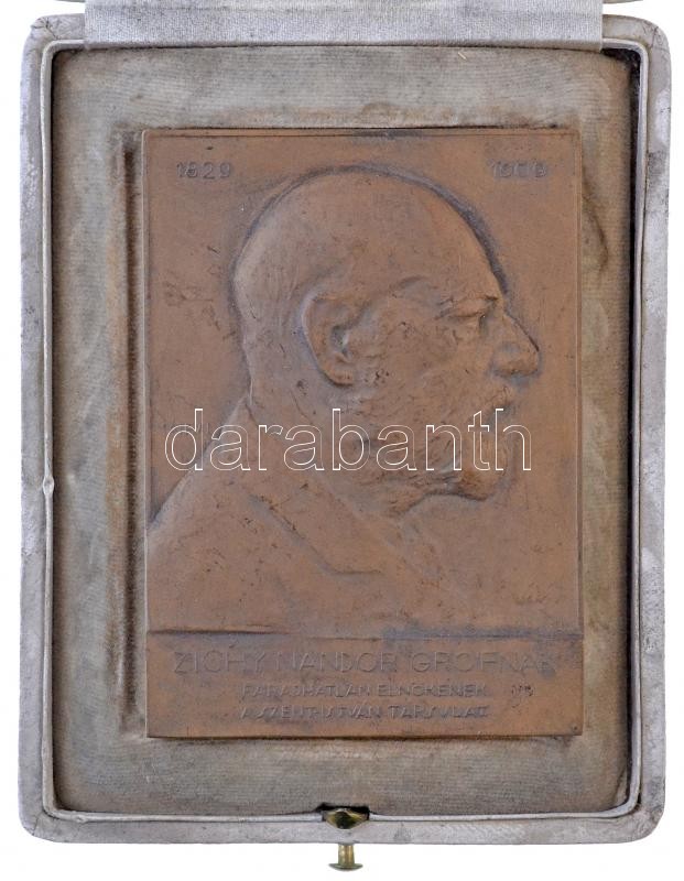 Mátrai Lajos (1875-1966) 1911. "Zichy Nándor grófnak fáradhatatlan elnökének a Szent-István Társulat / Quattuor Lustris Praesidi Societas Sti Stephani." Br emlékplakett eredeti dísztokban (144g/57x79mm) T:2 / Hungary 1911. "To count Nándor Zichy the president of the Saint Stephen Company / Quattuor Lustris Praesidi Societas Sti Stephani." Br commemorative plaque in original case. Sign.: Lajos Mátrai (144g/57x79mm) C:XF HP 3539.