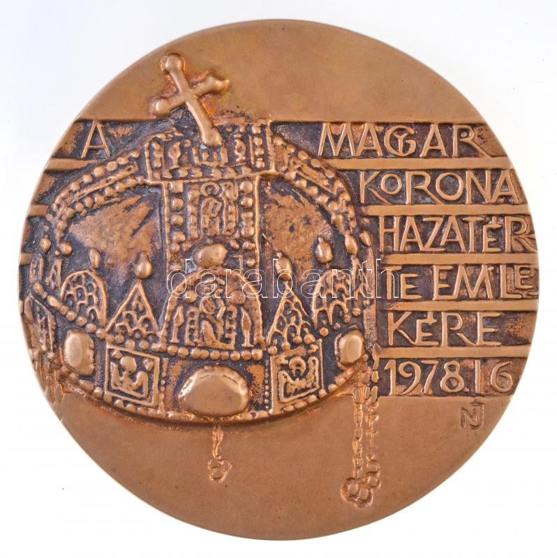 Nagy István János (1938-) 1978. "A Magyar Korona hazatérte emlékére" Br emlékplakett (96mm) T:2