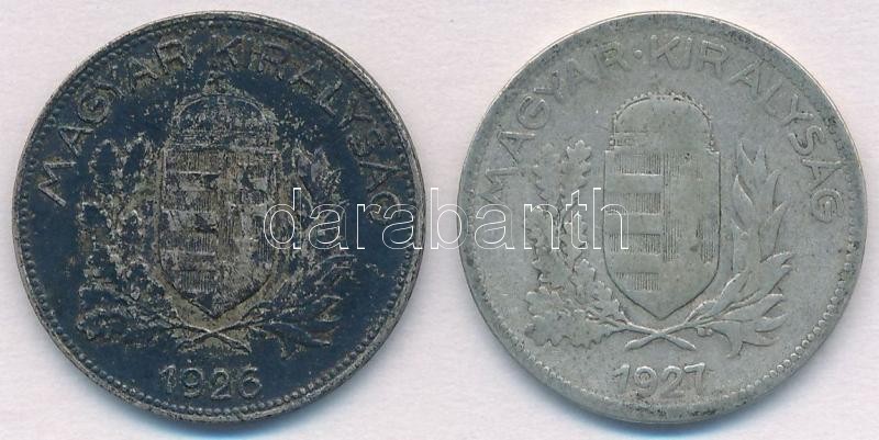 1926-1927. 1P Ag (2x) T:2,2- patina https://www.darabanth.com/de/324-Fernauktion/324.0/Numismatik/Ungarische-Munzen-und-Munzen-mit-ungarischem-Munzzeichen~2500008/1926-1927-1P-Ag-2x-T2-2-patina~II1802827