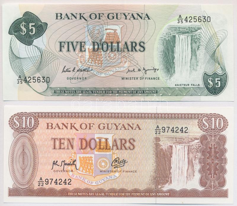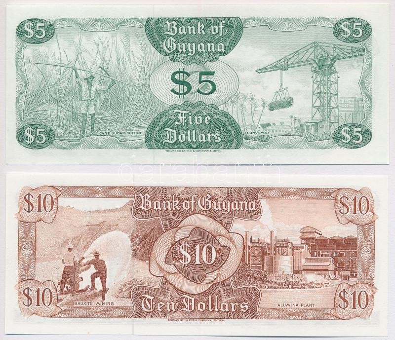 Guyana 1989. 5 Dollars + ~1992. 10 Dollars C:UNC