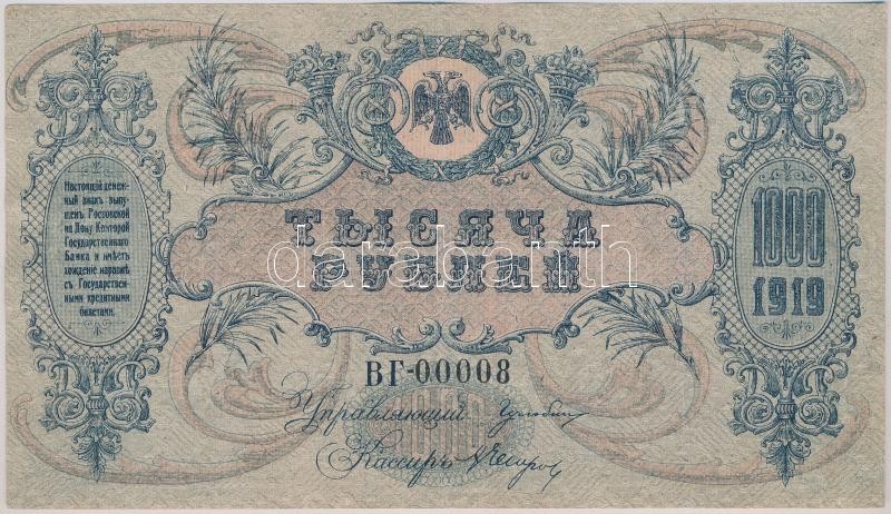 Orosz Polgárháború / Dél-Oroszország / Gyenyikin és Vrangel hadserege 1919. 1000R vízjeles T:III