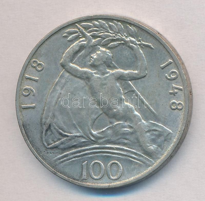 Csehszlovákia 1948. 100K Ag "Függetlenség" T:2 Czechoslovakia 1948. 100 Korun Ag "Independence" C:XF Krause KM#27