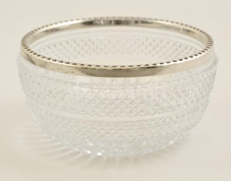 Kristály tál ezüst peremmel d: 12 cm / Crystal tray with silver parts... https://www.darabanth.com/de/325-Fernauktion/325.0/Andere-Sammelgebiete/Antik~4/Kristaly-tal-ezust-peremmel-d-12-cm-Crystal-tray-with-silver-parts-d-12-cm~II1811636