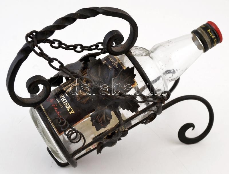 Beschreibung: Kovácsolt vas dekoratív italos üvegtartó, m: 21 cm, d:10 cm