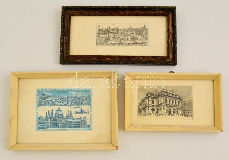 Beschreibung: 3 db kisméretű Budapest témájú rézkarc keretben 23x17cm