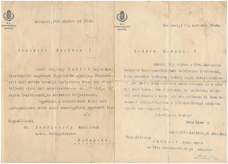 cca 1920-1940 Eskütt Lajos (1896-1957), Nagyatádi Szabó István titkára, az Eskütt-féle panamaügy főszereplője iratai: ajánlások, igazolások, stb., érdekes anyag