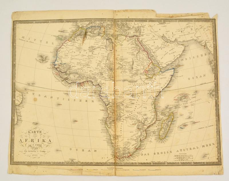 1842 Afrika térképe, F. Fried, Wien, Artaria & Comp, a széleinél kissé gyűrött, 36x50 cm./ 1839 Map of Africa, F. Fried, Wien, Artaria & Comp., with creased margins, 36x50 cm.