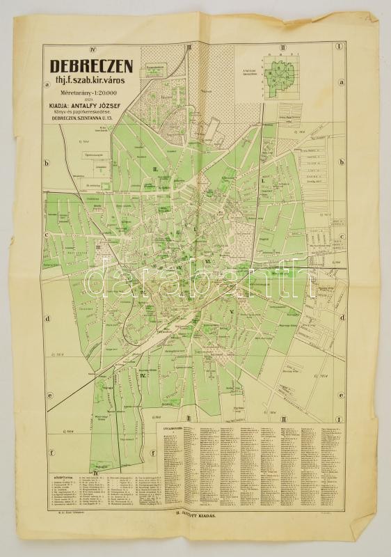 1929 Debrecen térképe, kiadja Antalfy József, M. Kir. Honvéd Térképész... https://www.darabanth.com/de/325-Fernauktion/325.0/Andere-Sammelgebiete/Landkarten~28/1929-Debrecen-terkepe-kiadja-Antalfy-Jozsef-M-Kir-Honved-Terkepeszeti-Intezet-120000-~II1809829