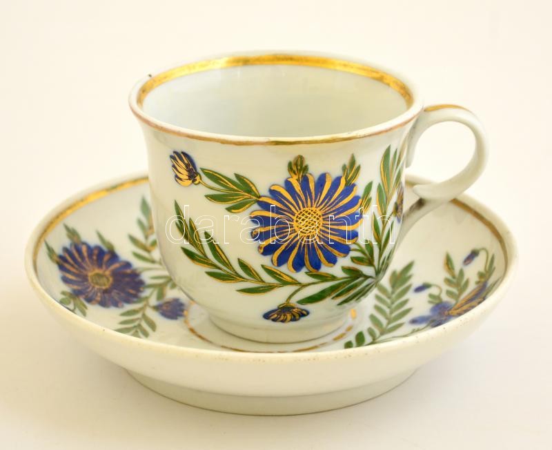 Beschreibung: Jelzett kézzel festett csésze és alj, kopott