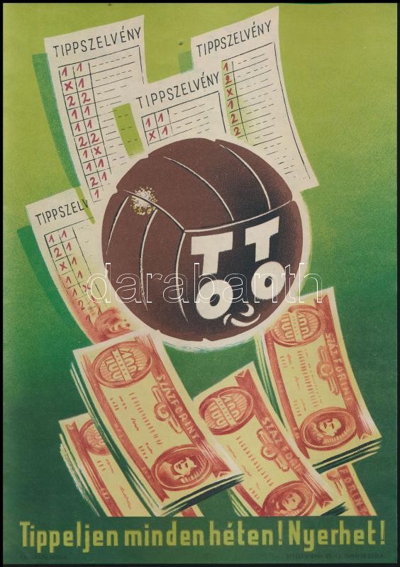 cca 1962 TOTÓ kisplakát, Offset Nyomda, 24×17 cm https://www.darabanth.com/de/325-Fernauktion/325.0/Andere-Sammelgebiete/Poster~30/cca-1962-TOTO-kisplakat-Offset-Nyomda-24C39717-cm~II1809096