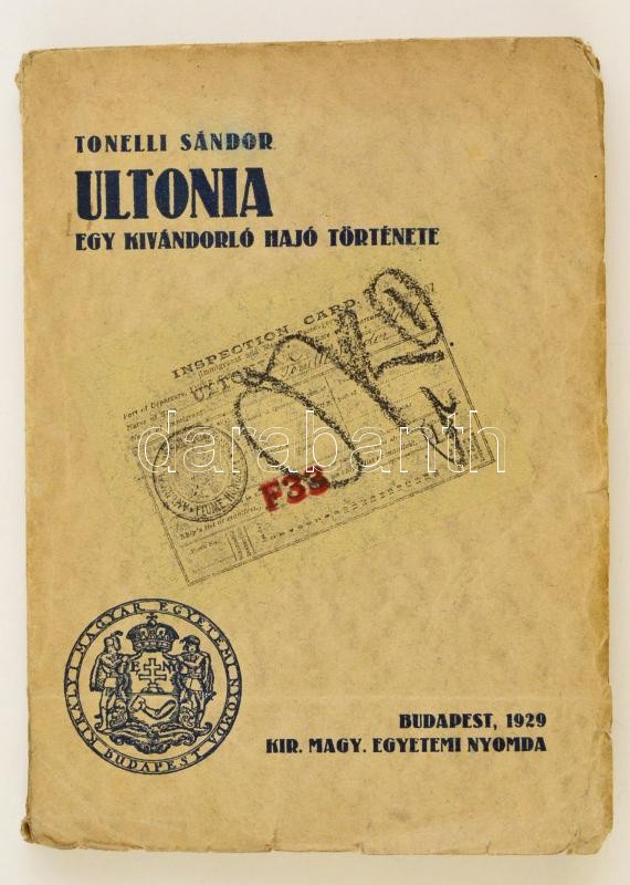 Egy kivándorló hajó története Bp. 1929. Kir. Magy. Egyetemi Nyomda. 201 l. 1 sztl. lev. Egészoldalas képekkel. Kiadói illusztrált kartonálásban