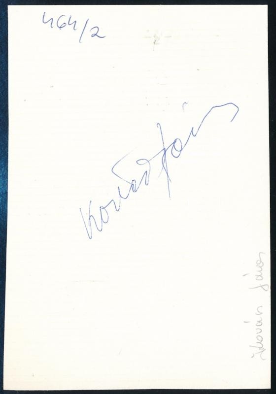 Beschreibung: Kovács János (1927-1992) színész aláírása őt ábrázoló fotó hátulján