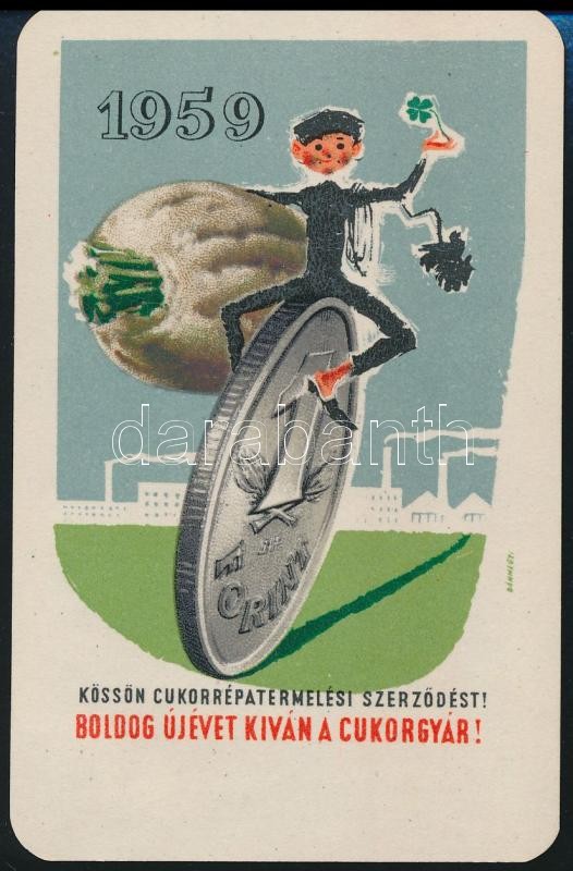 1959 Boldog Új Évet kíván a Cukorgyár reklámos kártyanaptár https://www.darabanth.com/de/325-Fernauktion/325.0/Andere-Sammelgebiete/Werbungen~21/1959-Boldog-Uj-Evet-kivan-a-Cukorgyar-reklamos-kartyanaptar~II1807235