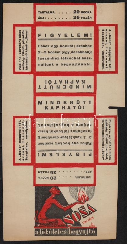 Sona begyújtó krampusz motívumos hajtatlan papírdoboza https://www.darabanth.com/de/325-Fernauktion/325.0/Andere-Sammelgebiete/Werbungen~21/Sona-begyujto-krampusz-motivumos-hajtatlan-papirdoboza~II1808009