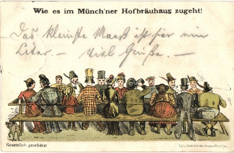 1898 Wie es im Münch'ner Hofbräuhaus zugeht! / Munich brewery art... https://www.darabanth.com/de/325-Fernauktion/325.0/Ansichtskarten/Bier-Alkohol-Tabak~2500064/1898-Wie-es-im-Munchner-Hofbrauhaus-zugeht-Munich-brewery-art-postcard-Lith-Anst-v-Ludw-Z~II1790689