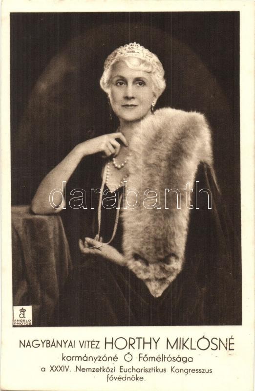 Nagybányai Vitéz Horthy Miklósné, Purgly Magdolna, a XXXIV. Nemzetközi... https://www.darabanth.com/de/325-Fernauktion/325.0/Ansichtskarten/Herrscher-Politiker-Konigshauser~2500068/Nagybanyai-Vitez-Horthy-Miklosne-Purgly-Magdolna-a-XXXIV-Nemzetkozi-Eucharisztikus-Kongressz~II1810310