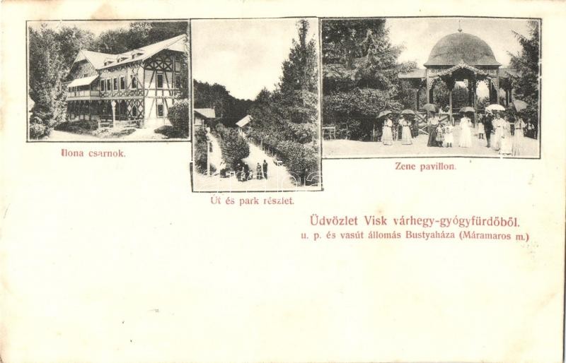 1907 Visk, Várhegy-gyógyfürdő, Vyshkovo (Máramaros); Ilona csarnok, út... https://www.darabanth.com/de/325-Fernauktion/325.0/Ansichtskarten/Karpatenukraine~2500007/1907-Visk-Varhegy-gyogyfurdo-Vyshkovo-Maramaros-Ilona-csarnok-ut-es-park-zene-pavilon-~II1810600