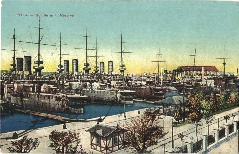 Pola, Schiffe in Reserve / Osztrák-magyar hadihajók a hadi kikötőben, ... https://www.darabanth.com/de/325-Fernauktion/325.0/Ansichtskarten/Kriegsschiffe~2500050/Pola-Schiffe-in-Reserve-Osztrak-magyar-hadihajok-a-hadi-kikotoben-M-Schulz-KuK-Kriegsm~II1811904