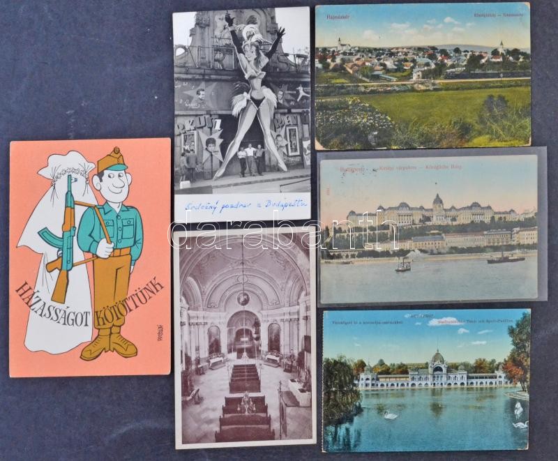 Nagyméretű cipős doboz benne sok száz modern képeslap továbbá 50-es évek és kevés háború előtti is: főleg magyar városképek. Érdekes, tartalmas, változatos anyag!!