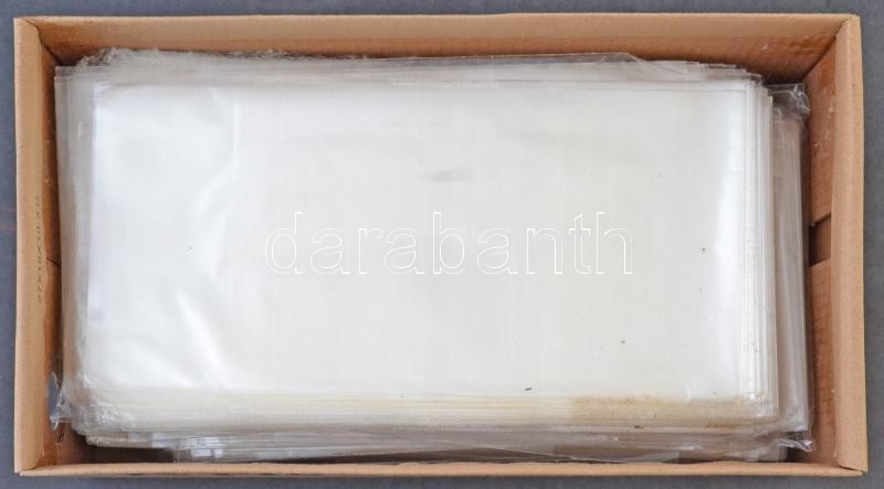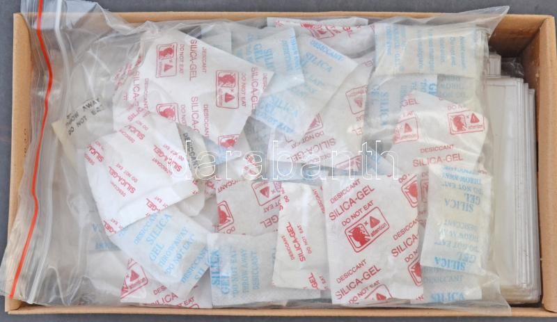 Kb. 1000 db B.O.P.P. nagyobb méretű (17 cm x 10,5 cm) műanyag képeslaptartó tok + kb. 0.5 kg páramegkötő szilikagél tasak (nedvszívó) / Cca. 1000 B.O.P.P. bigger sized (17 cm x 10,5 cm) plastic postcard carrying cases + cca. 0.5 kg desiccant silica gel packets