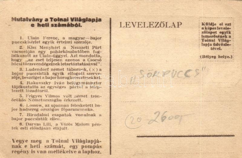 Müncheni sörpuccs eseményei és arcai: Ulain Ferenc, Kiss Menyhért, Ludendorf német tábornok, Rakovszky Iván, Frigyes Vilmos, Lossow, Darvas Lili / Hitlerputsch / Events and faces of the Munich Beer Hall Putsch (EK)
