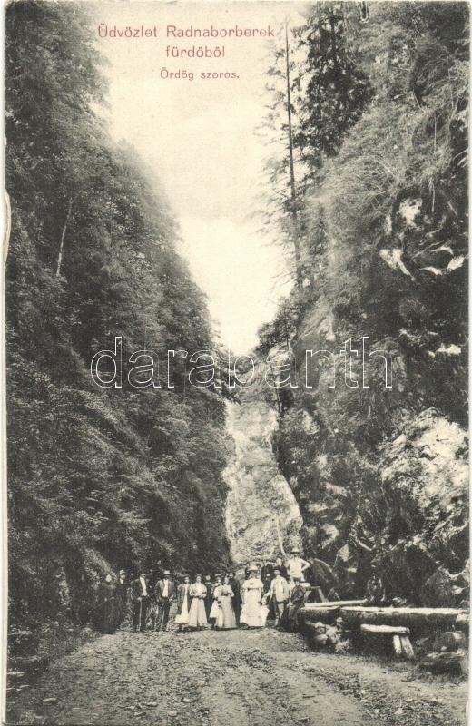 1911 Radnaborberek-fürdő, Valea Vinului; Ördög szoros kirándulókkal / ... https://www.darabanth.com/de/325-Fernauktion/325.0/Ansichtskarten/Siebenburgen~2500005/1911-Radnaborberek-furdo-Valea-Vinului-Ordog-szoros-kirandulokkal-gorge-with-hikers~II1809582