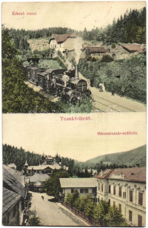 Tusnádfürdő, Baile Tusnad; Vasútállomás, érkező vonat, Háromhuszár szá... https://www.darabanth.com/de/325-Fernauktion/325.0/Ansichtskarten/Siebenburgen~2500005/Tusnadfurdo-Baile-Tusnad-Vasutallomas-erkezo-vonat-Haromhuszar-szalloda-Dragoman-cC3~II1805188