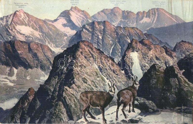 Beschreibung: 1917 Tátra, Kilátás a Csorba-csúcsról, zergék / Strbsky stit, Chamois (EK)