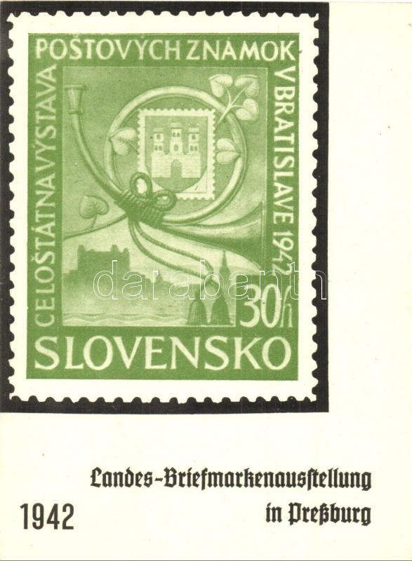 1942 Pozsony, Pressburg, Bratislava; Celostátna Vystava Postovych Známok v Bratislave / Landes-Briefmarkenausstellung in Pressburg / Országos bélyegkiállítás Pozsonyban / National Stamp Exhibition in Bratislava