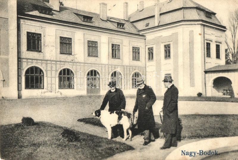 Beschreibung: Felsőbodok, Nagy-Bodok, Horné Obdokovce; Stummer kastély, urak kutyával / Schloss / castle with dog (Rb)