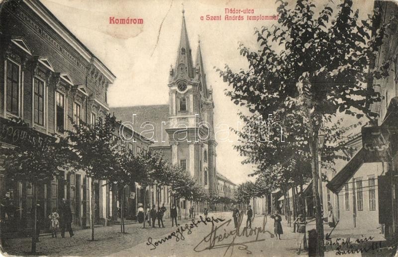 Komárom, Komárno; Nádor utca, Szent András templom, üzletek. Czike Dén... https://www.darabanth.com/de/325-Fernauktion/325.0/Ansichtskarten/Slowakei~2500006/Komarom-Komarno-Nador-utca-Szent-Andras-templom-uzletek-Czike-Denes-kiadasa-street-vie~II1810332