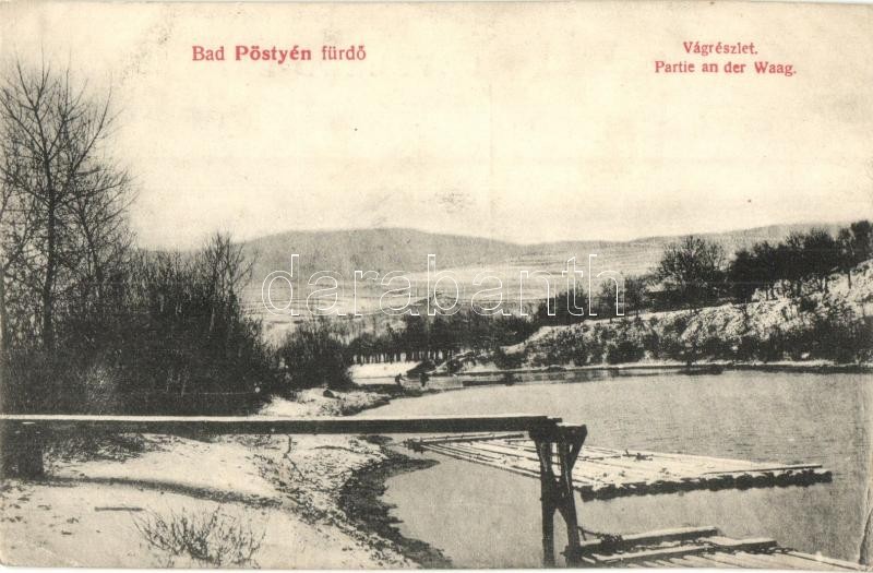 Pöstyén, Pistyan, Piestany; Vág folyó részlete télen, halászok. Lampl Gyula kiadása / Partie an der Waag / Váh riverside in winter, fishermen (ragasztónyom / glue mark)